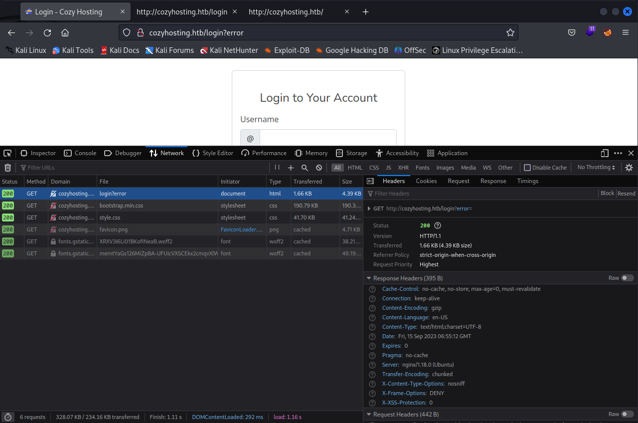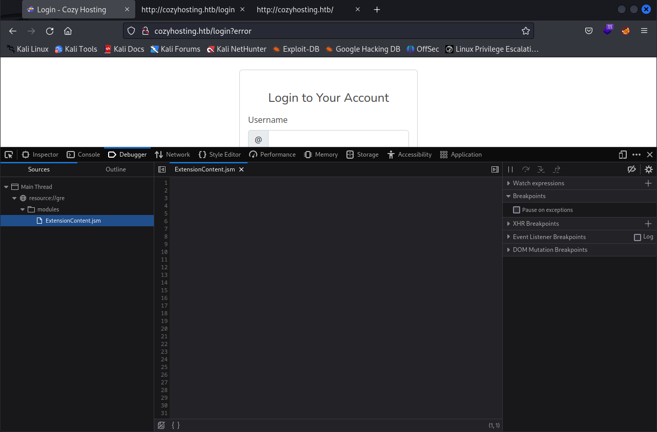 After no credential was successful, I continued to dig around to see what I can find before I run a directory scan, checking the network tab in devloper mode to see if any hidden files were being loaded, or even the debugger thinking that there may be a login system that exposes a way to change our cookies and get elevated privileges.