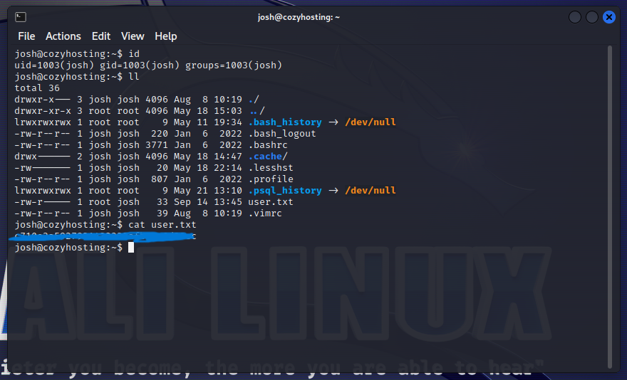 We’re in! Here you will find his user flag which you can then enter into hackthebox.com